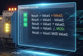 Learn how to perform arithmetic operations in RSLogix 5000 & Studio 5000 Structured Text (ST). This guide covers arithmetic operators (+, ?, *, /, MOD) with clear PLC programming examples and best practices for efficient logic development.