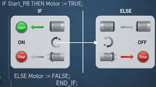 Learn how to use If-Else conditions in RSLogix 5000 / Studio 5000 Structured Text (ST) programming. Includes examples, syntax, and PLC logic explanation.