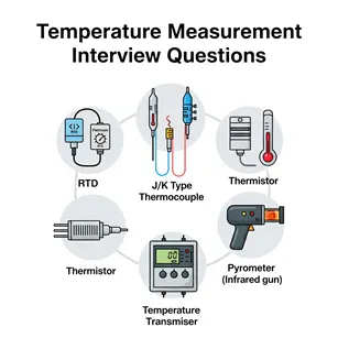 Prepare for interviews with the most commonly asked temperature measurement questions. Covers RTDs, thermocouples, thermistors, signal conditioning, and practical applications. Ideal for freshers, instrumentation engineers, and automation professionals.
